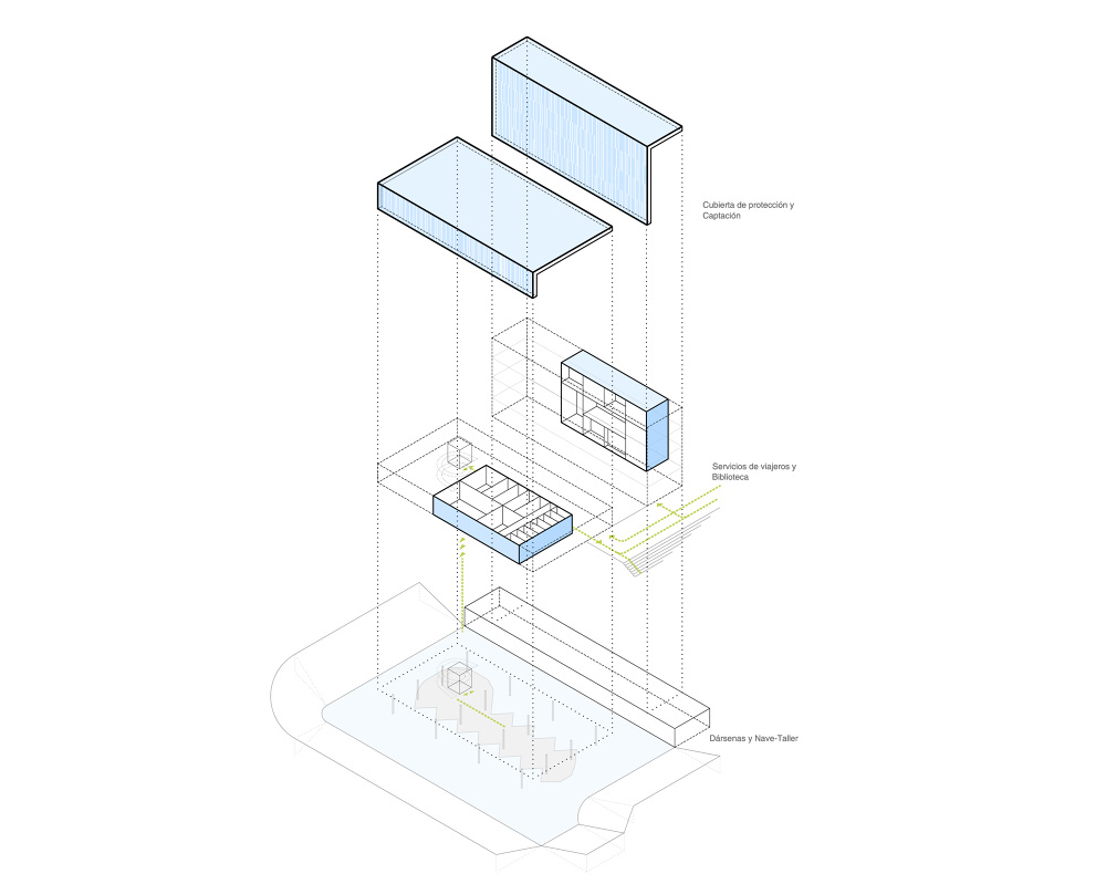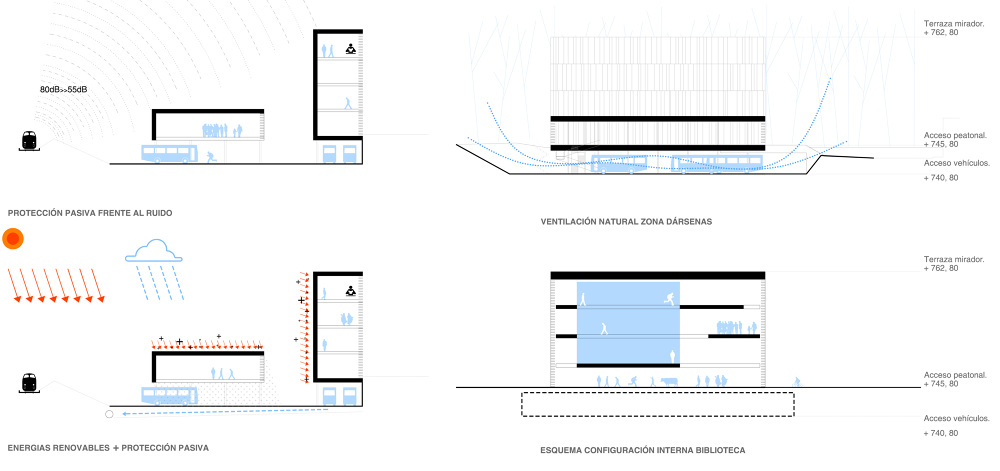 Una propuesta que nace de la necesidad de conciliar dos programas muy diferentes en una misma ubicación: con una “materia prima” tan diferente en escala e impacto como son el autobús y el libro; y con un usuario tan diferente en tiempo de estancia y nivel de estrés como el pasajero y el lector.