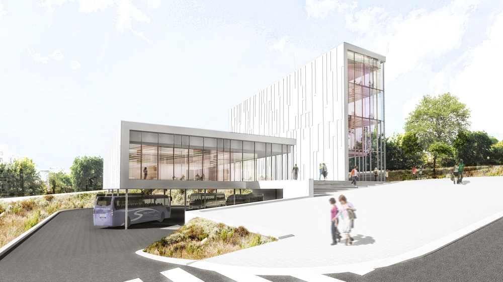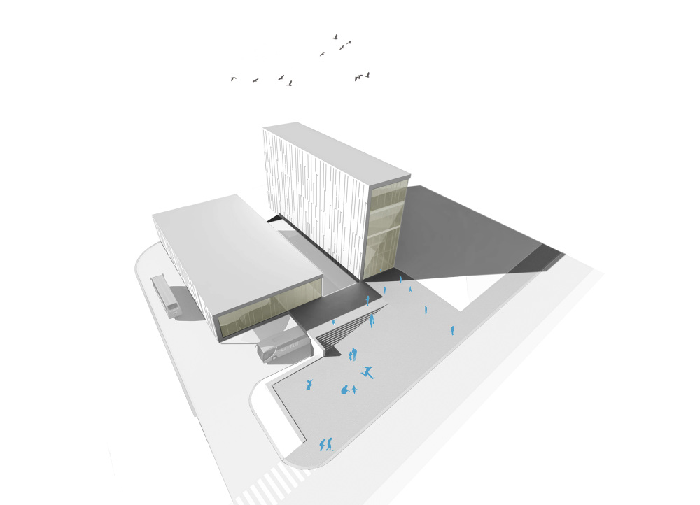 JUNTOS PERO NO REVUELTOS… pretende realizar una actuación unitaria pero, a la vez, que mantenga la independencia necesaria para el correcto funcionamiento de ambos programas. Un volumen horizontal, la estación de autobuses, y otro contiguo en posición vertical conteniendo la biblioteca.