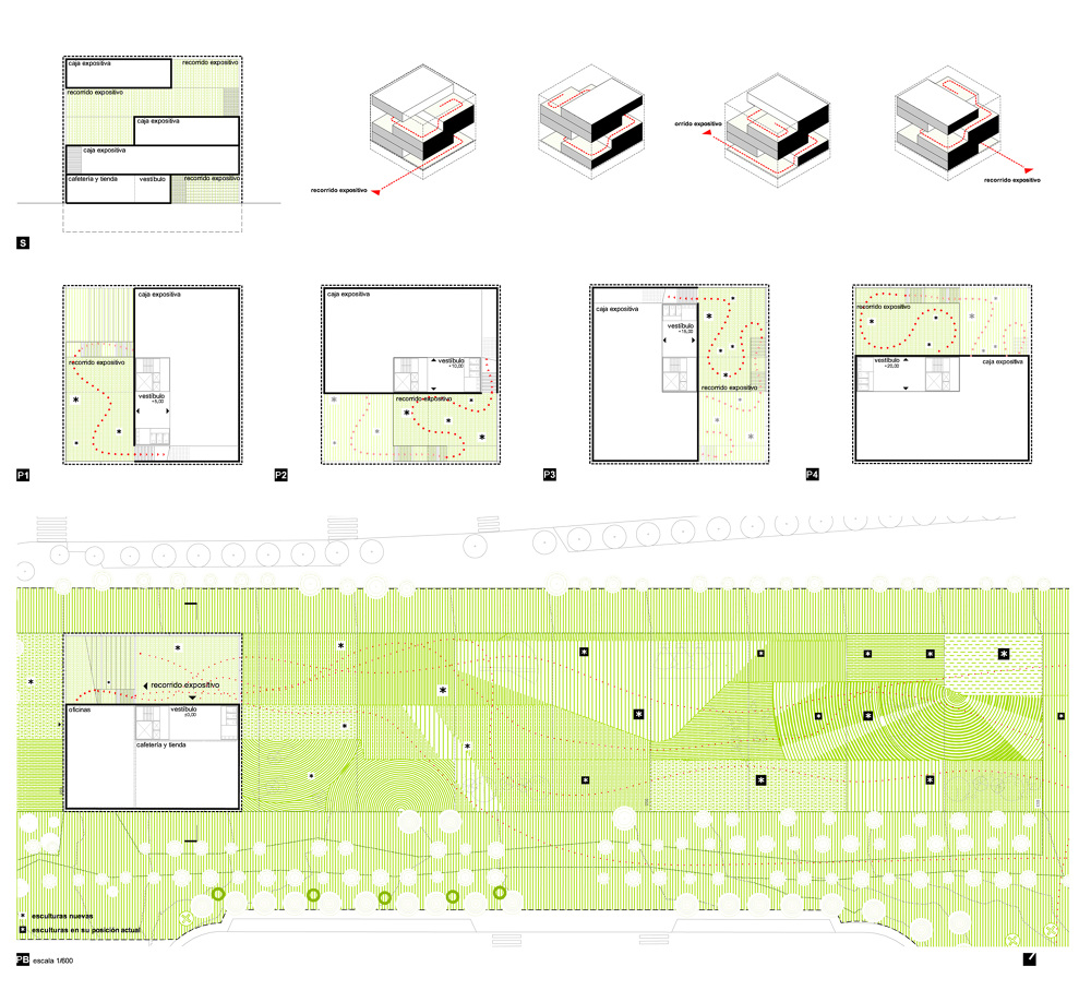Se posiciona en el extremo opuesto a la edificación actual, creando un diálogo entre las piezas edificadas que acota el ámbito del museo. Son piezas complementarias, ligadas ambas a la colección exterior del museo. Su posición al inicio del actual recorrido de escultura al aire libre, genera un claro punto de acceso y le permite funcionar como vestíbulo de acceso tanto a la colección interior como a la exterior ya en uso.