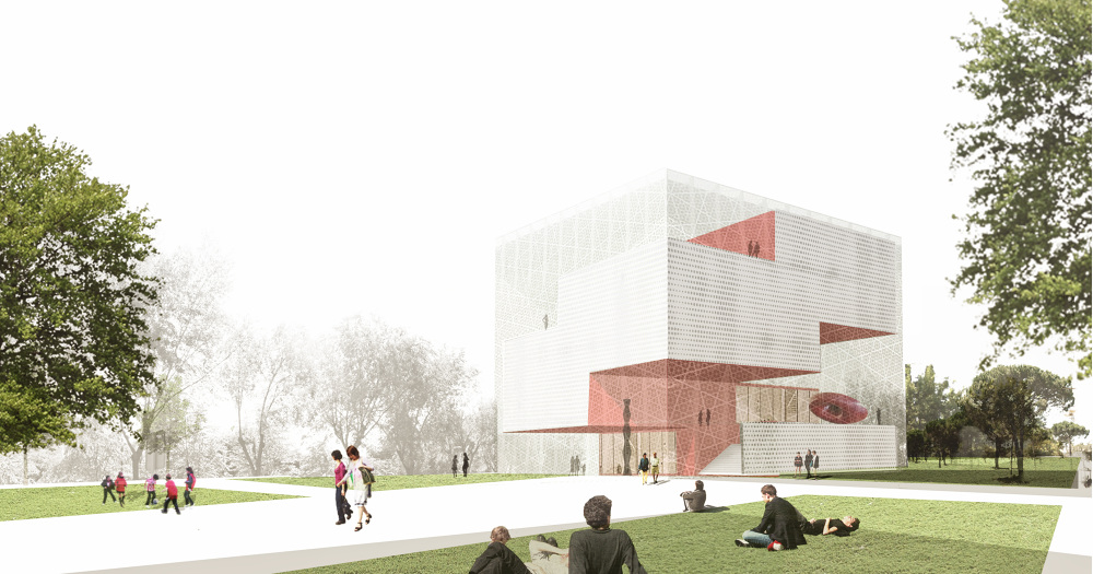 Lego se implanta en la parcela ocupando la mínima superficie posible, sin afectar a la colección actual ni al edificio de las Dehesillas que contendrá el programa de aulas taller y auditorio. Esta posición lo presenta como un hito urbano que representará un reclamo para la ciudad. Un volumen reconocible dentro del perfil de la ciudad que se pondrá en relación con la cubierta de Leganés.