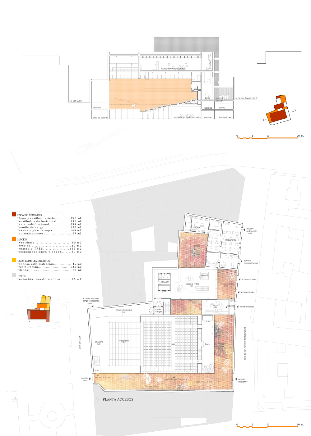 El espacio no construido, que en su día se configuró como centro del convento originario, y del que aún se conserva la iglesia en el extremo sur de la parcela, vuelve de nuevo a ser el elemento que dirige la narrativa general de la propuesta. Permitiendo la relación entre las diferentes piezas y sobre todo dando autonomía al conjunto cuya actividad se produce intramuros sin afectar necesariamente a la ciudad circundante.