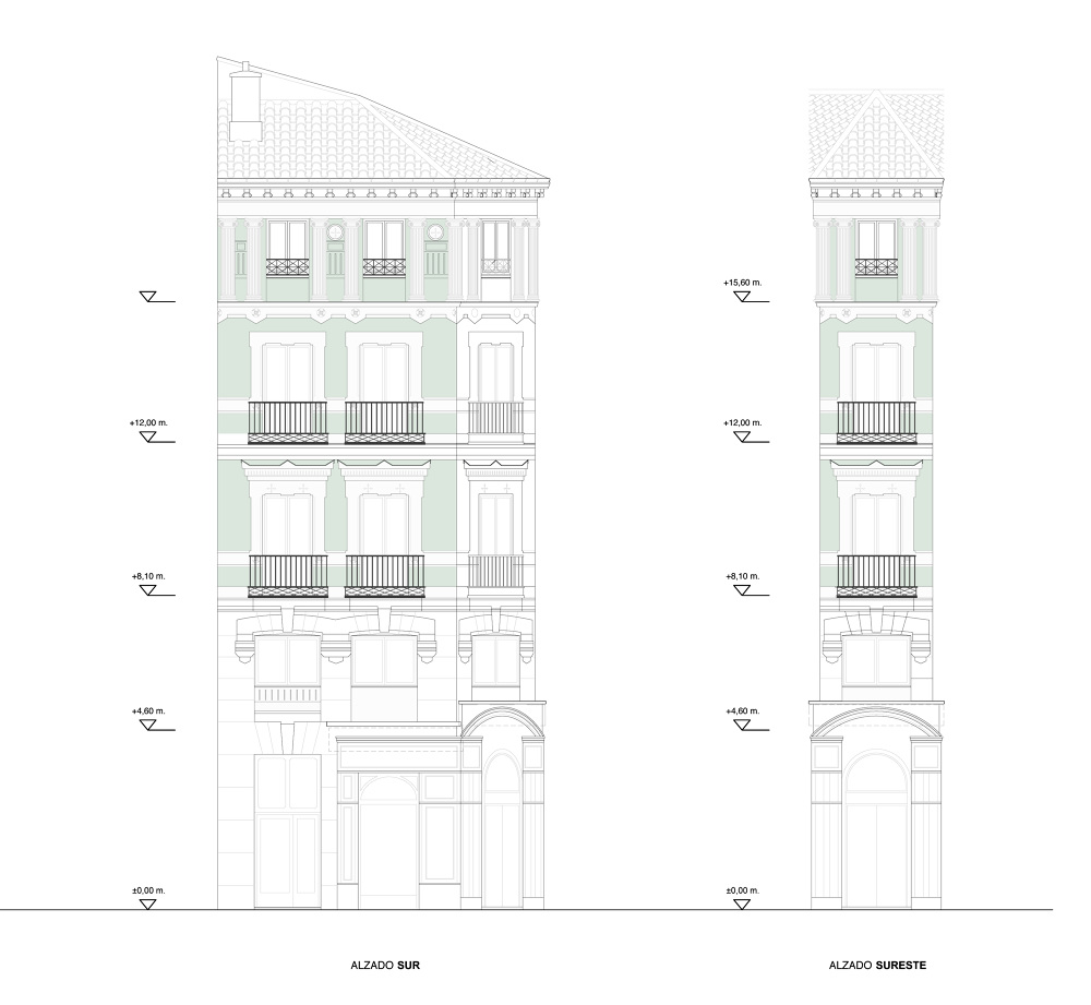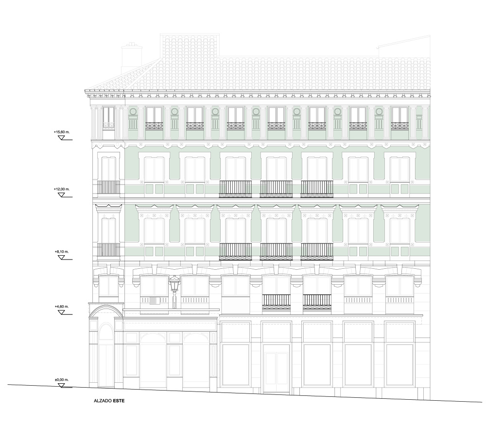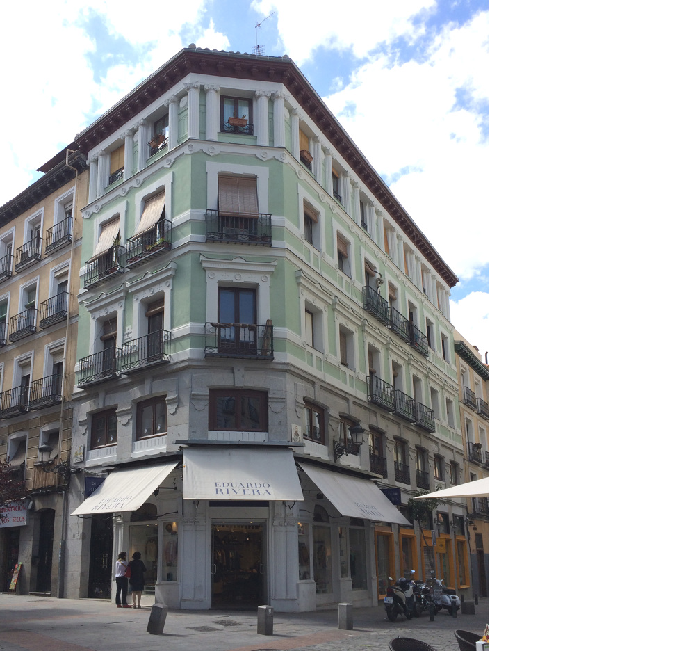 Se trata de un edificio de viviendas en el Barrio de Las Letras, con una fachada historicista que añade elementos clásicos al esquema habitual de vivienda del casco histórico Madrileño. Se intervino en la totalidad de las fachadas, la ecalera, la cornisa y la cubierta.